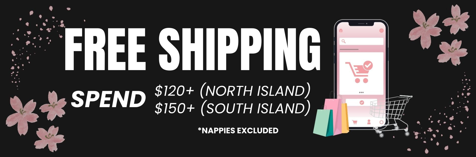 When you spend over $120 (North Island) - $150 (South Island) | *Nappies excluded
