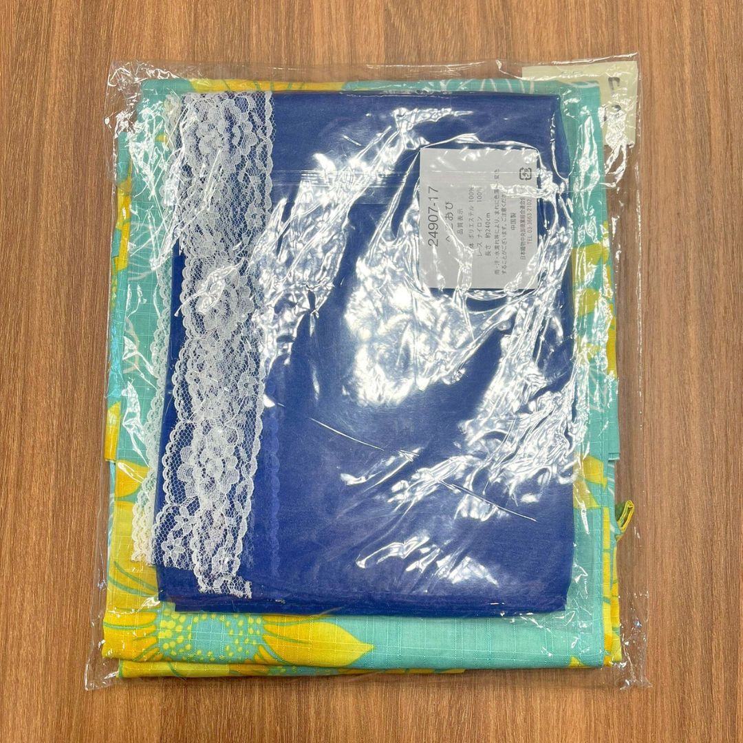 Girls' 2-Way Yukata 110Cm 3-Piece Set (Dress, Top, Obi) Greenish-blue With Sunflowers / Clothes Set 1